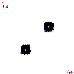 | Evolife offers currently only a sketch implementation of Turing’s Reaction-Diffusion model, using the Gray-Scott implementation (see animation). You’ll find it in the directory Apps/Morphogenesis. You can run it by executing the local command Starter. As its stands, the program offers a basic implementation of the Gray-Scott reaction. You may play with the parameters that are accessible through Starter. Don’t change them too abruptly, as the Gray-Scott model is quite sensitive to slight deviations. |
